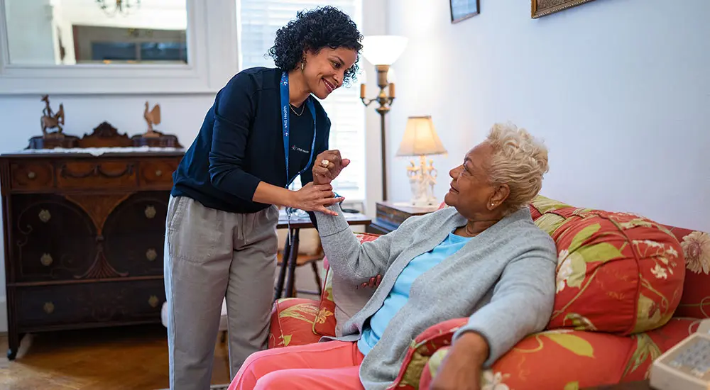 - Stay safe at home: Receive health checks at home — like checking blood pressure or blood sugar — and screenings to help prevent falls.